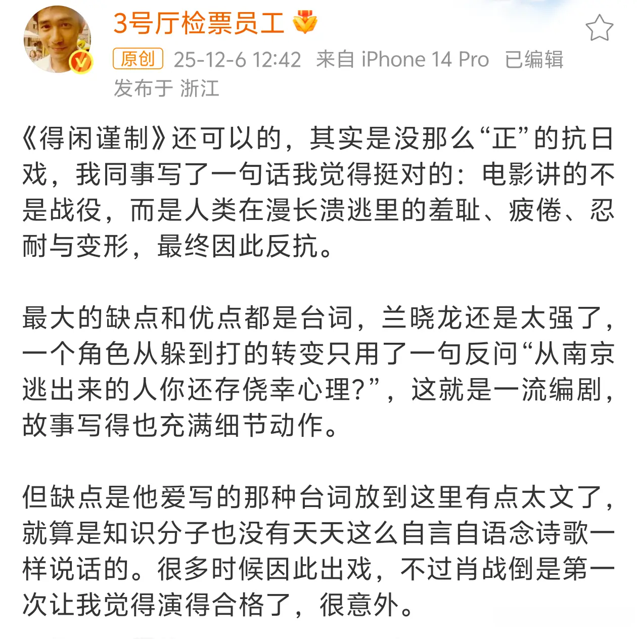 肖战的演技在《藏海传》得到过肯定,但在电影里一直没有多少好评,这次倒是肉眼可见地成长了很多。编剧也确实很强。