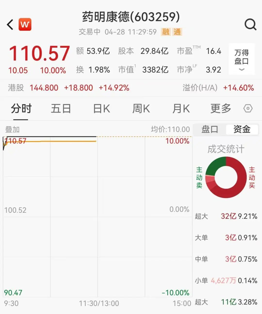 对此,市场反响热烈,截至4月28日午盘,药明康德A股收获一字涨停,H股大涨15.4%。